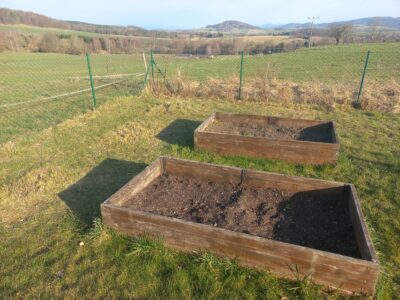 Zatím jsem vytrhala ty největší trsy trávy z malin a připravila prostor na zrytí, vytrhala záhony.