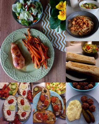 A tady už telefonní inspirace: vajíčková pomazánka na chlebu, chleby ve vajíčku, karbanátky s kaší, plněné tortilly, těstoviny s krůtím a omáčkou, kuřecí prso s batáty.
