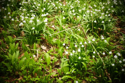 Stejně jako tady už i u nás v lese vyrazil medvědí česnek, a tak jsem včera cestou z běhu natrhala várku na pomazánku.